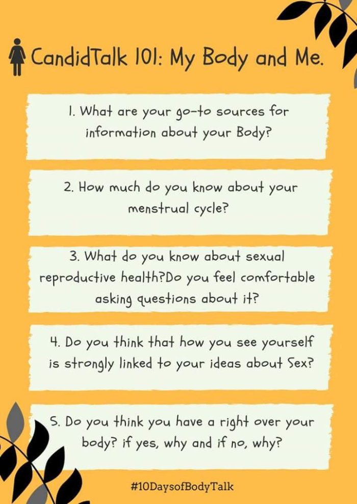 Especially on things menstruation, our female organs and sex. I don’t know about you, but where I’m from, most women find it difficult and consider it vulgar to mention the words ‘menstruation’ or ‘vagina’ or anything linked to the female form. Not to mention ‘Sex’.